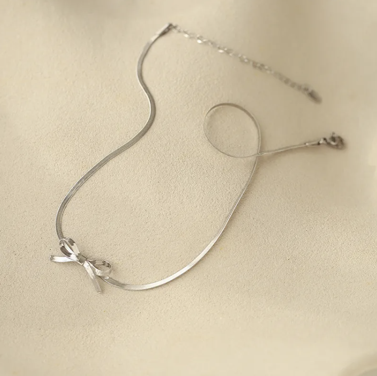 Bow Silver Choker Necklace | 925 Sterling Silver | Gift for Her | Delivered in Gift Box.