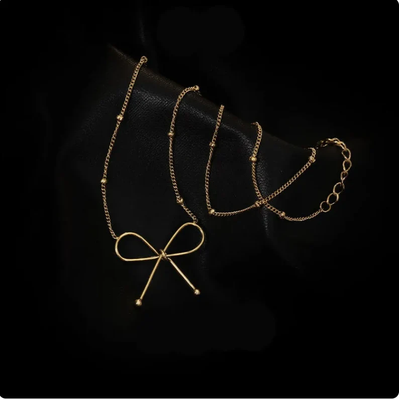 Unique Design: Bow Gold Necklace is Simply Stunning.
