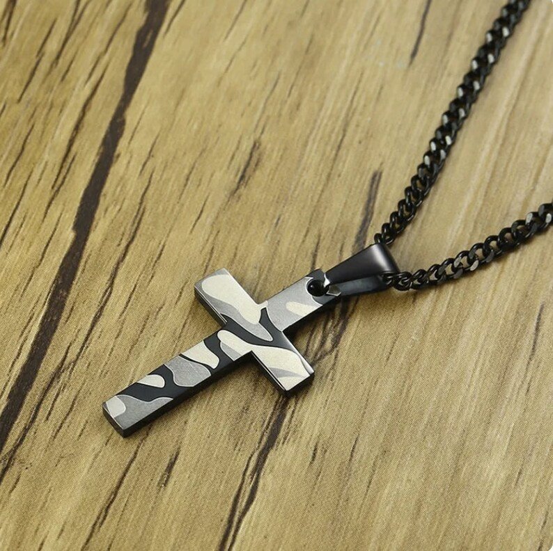 Unique Design: Camouflage Cross Pendant Necklace is simple but elegant.