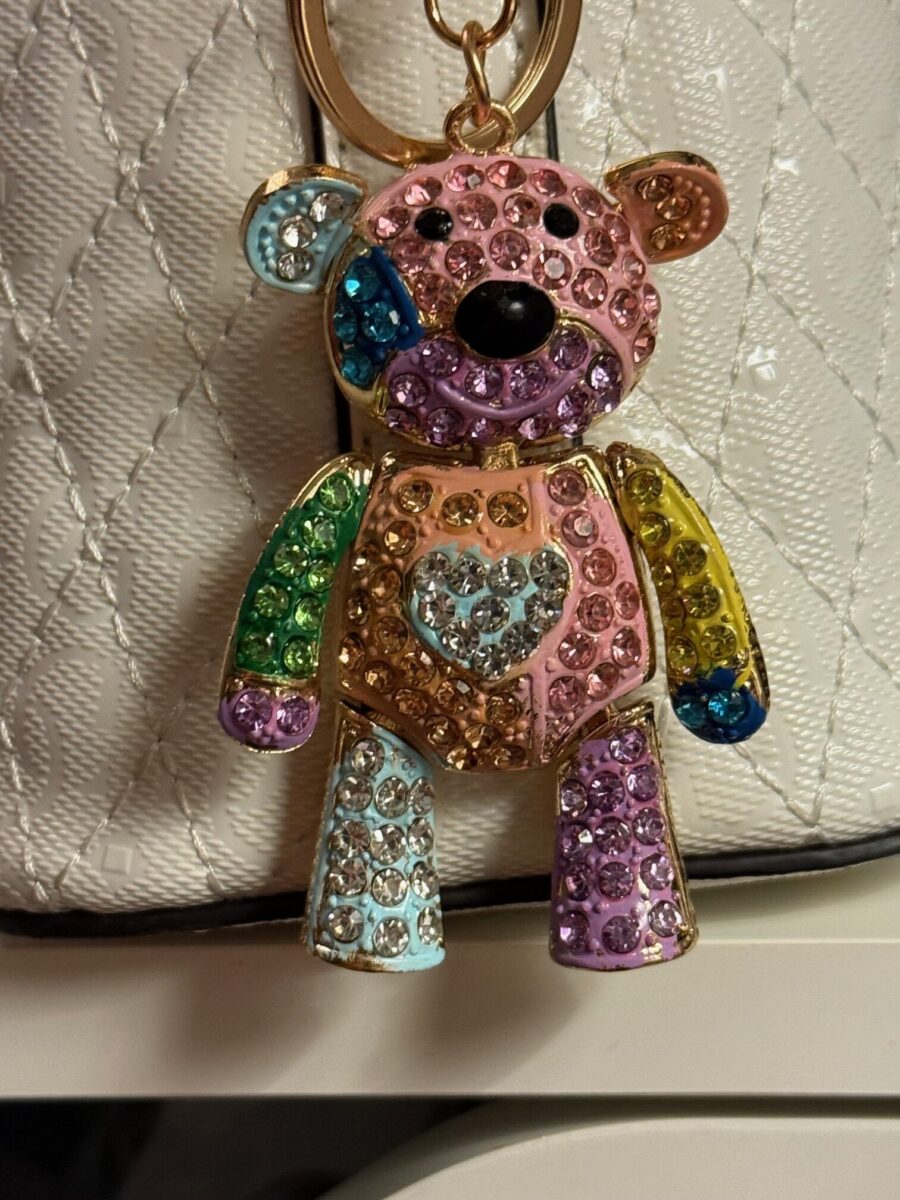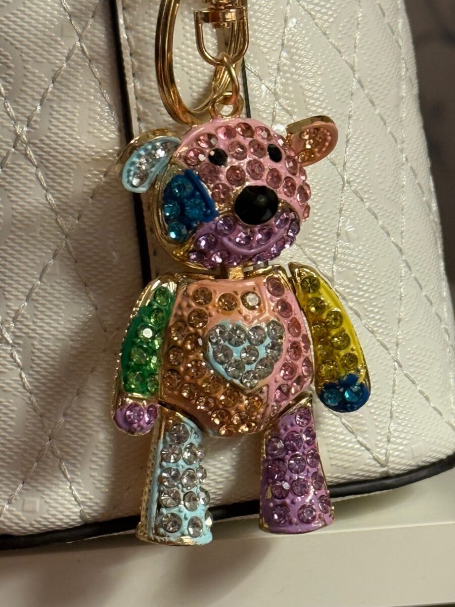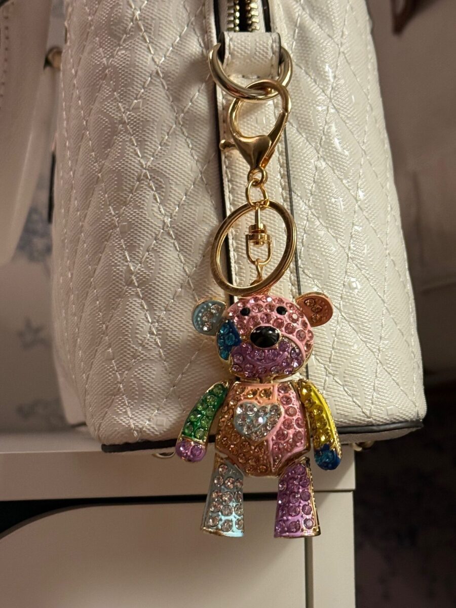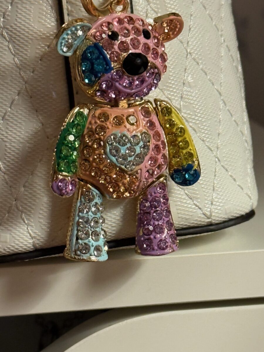 Perfect as a handbag charm, purse accessory, or stylish keychain, this unique bear charm is sure to brighten up your day.
