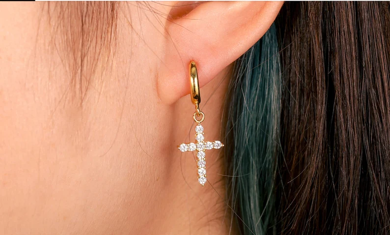 Elevate your spiritual style with the radiant allure of our Cross Pendant Earrings. Adorned with lab-created diamonds, these earrings are more than accessories—they are an expression of devotion and eternal elegance