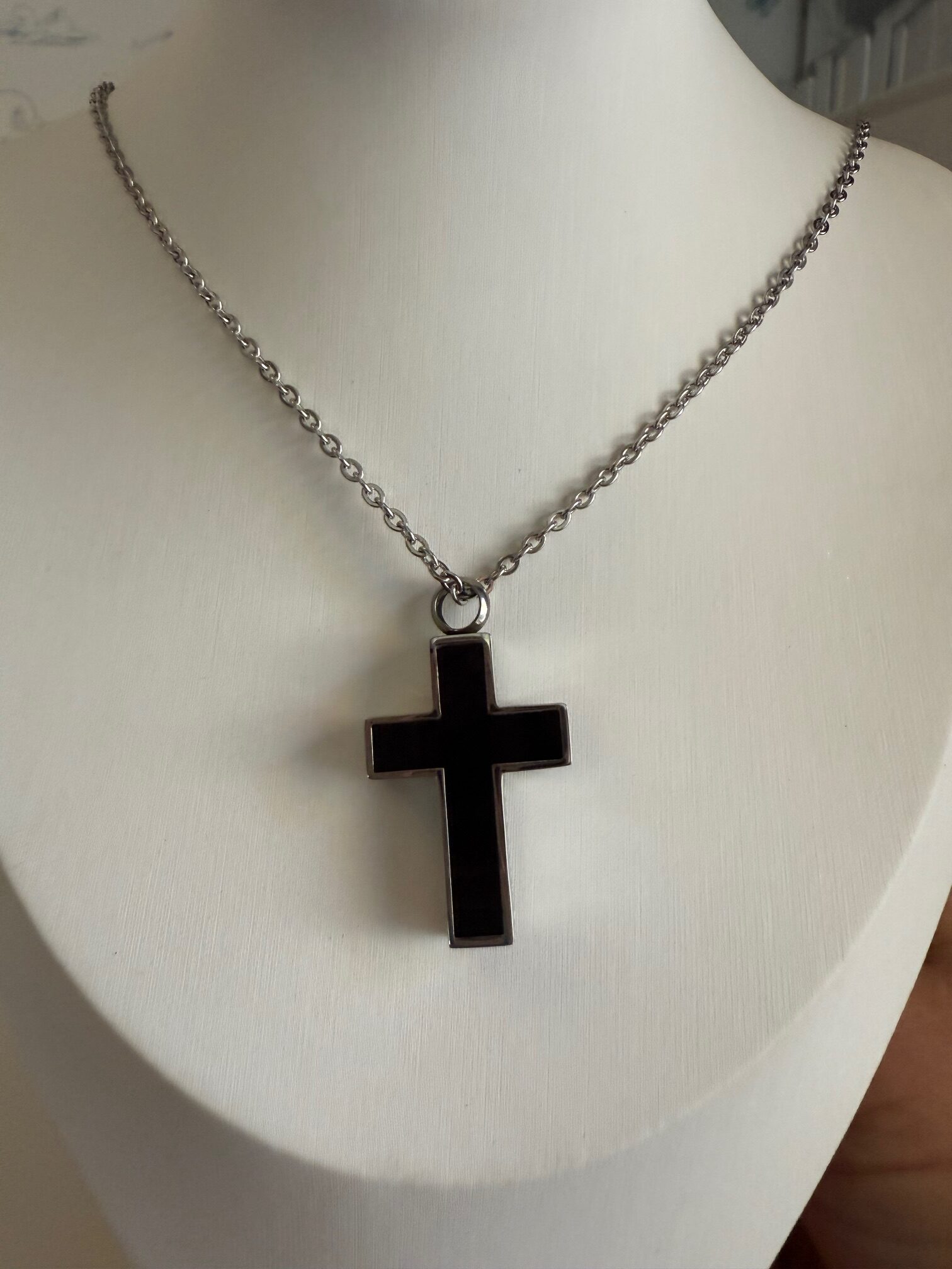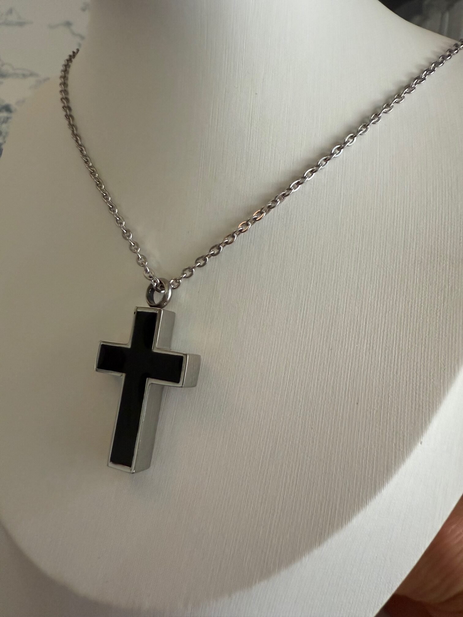 Made with durable stainless steel, this cremation necklace resists tarnish and fading for long-lasting wear. The 19-inch chain provides a comfortable and stylish fit, suitable for both men and women. Perfect for keeping a part of your loved one or pet close to your heart, this urn cross necklace makes a heartfelt sympathy gift, memorial keepsake, or personal piece of comfort jewelry.
