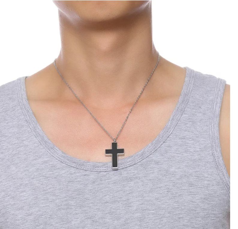Cross Urn Pendant Stainless Steel Necklace Available in Black or Silver | Gift for Him or Her | Delivered in Gift Box. Can be worn as a memory Ashes Necklace or Just a Cross Necklace.