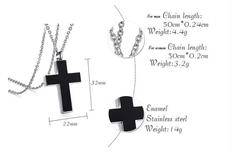 Be the first to review “Cross Urn Pendant Necklace | Black or Silver | Stainless Steel | Gift for Him or Her | Delivered in Gift Box”