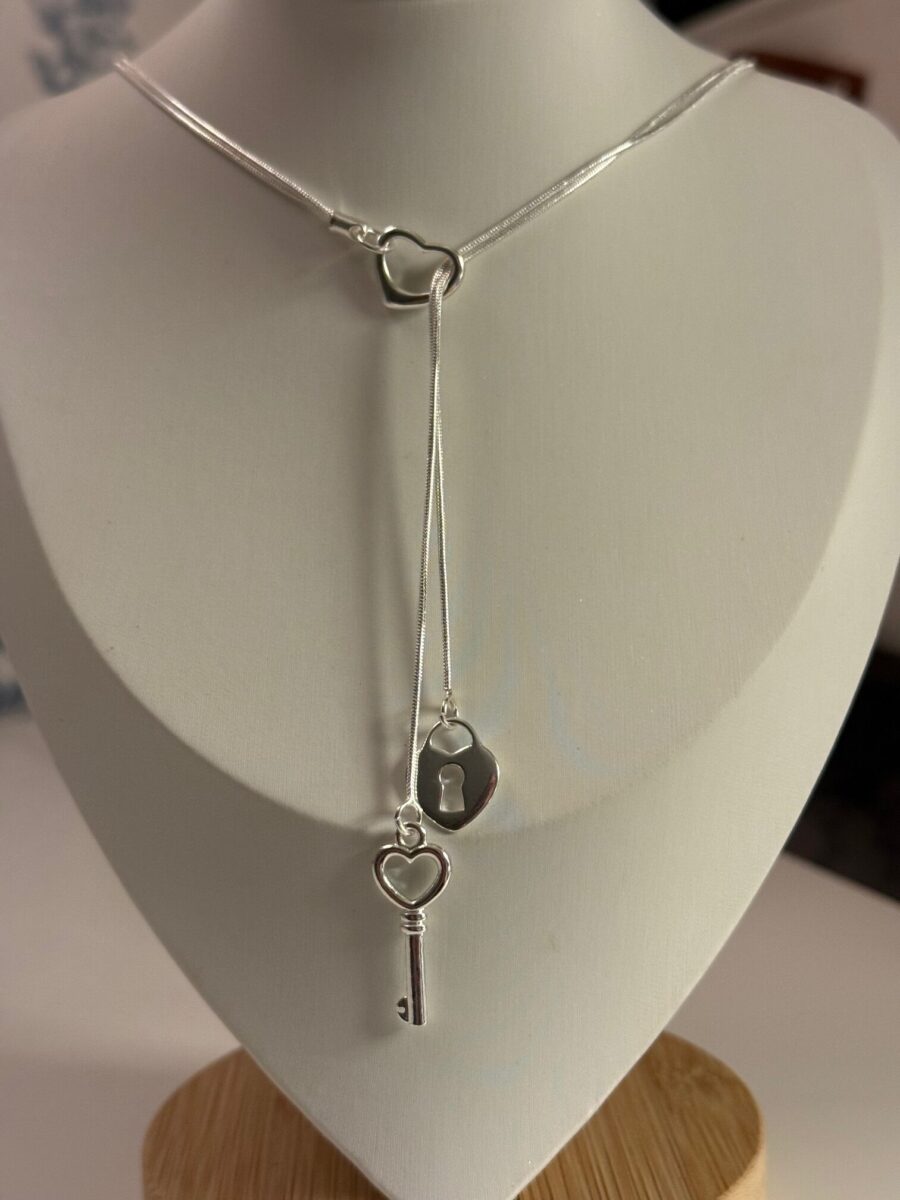 This sterling silver heart lock and key necklace is a timeless symbol of love and makes a thoughtful gift for someone special or a meaningful addition to your own jewelry collection.