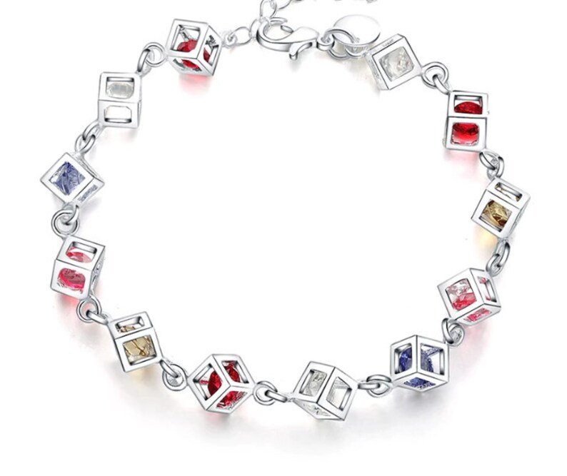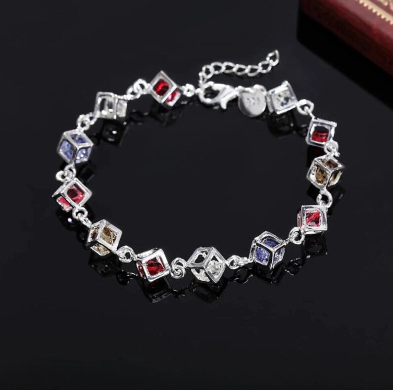 Rainbow Multi Color Cube Bracelet | 925 Sterling Silver Stamped| Gift for her | Birthday Gift | Delivered in Gift Box