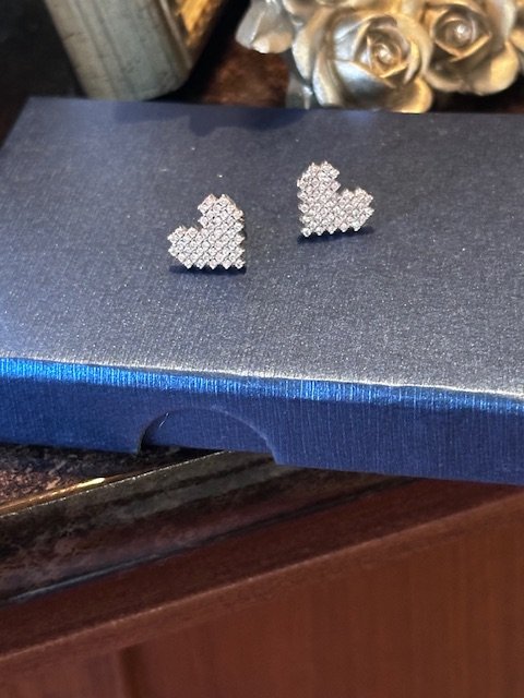 Retro Heart Earrings | Sparkly Crystal Studs | Dainty Love Jewelry Gift for Her