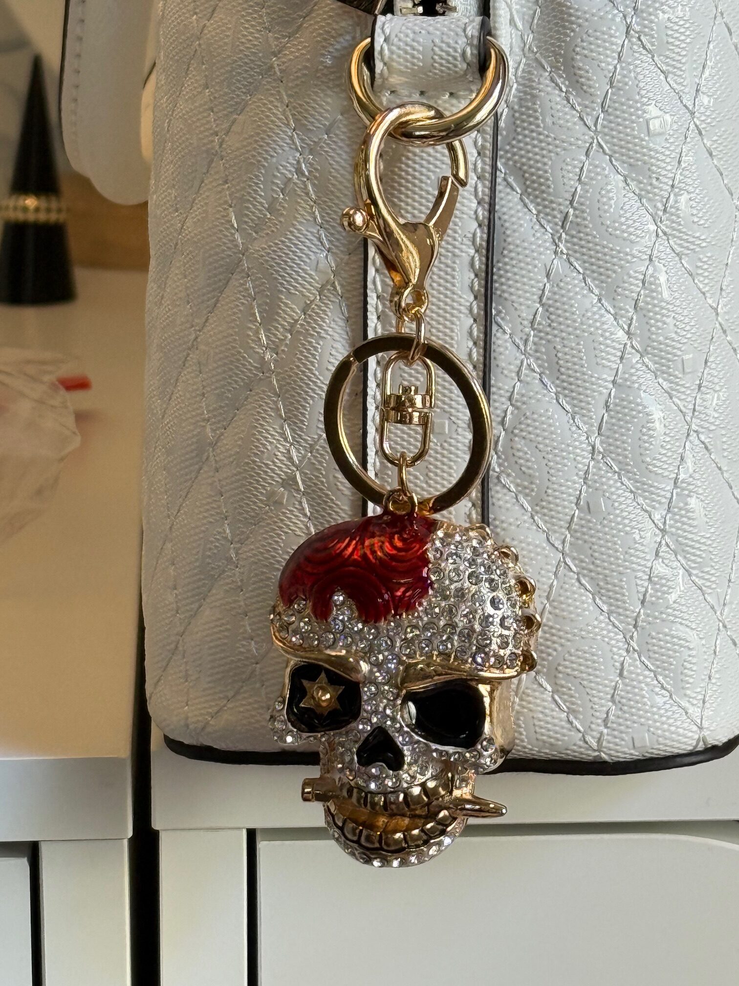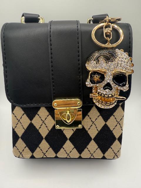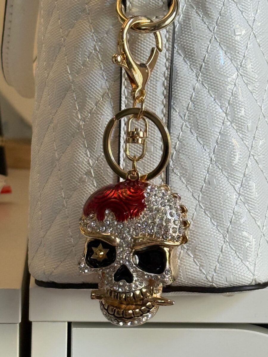 Skull Bad To The Bone Crystal Keychain or Handbag Charm Available in Red and Black | Delivered in Gift Box | Gift for Her.