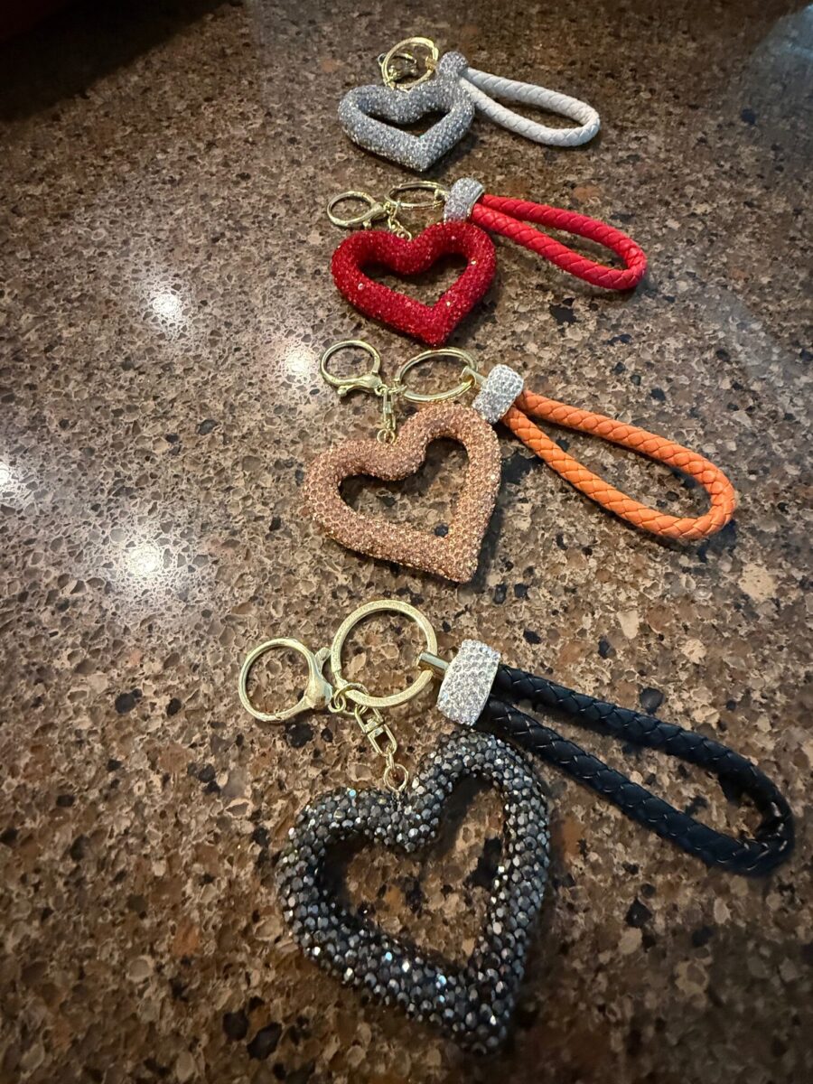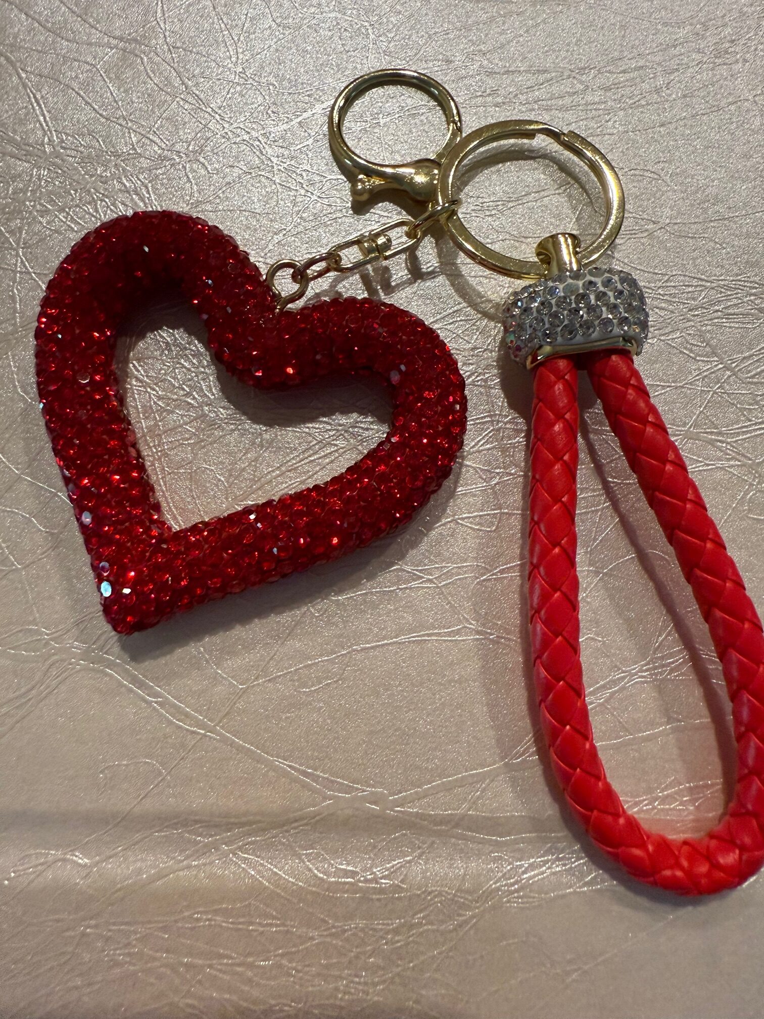 Shine bright with this sparkly heart Handbag charm or keychain, the perfect accessory to dress up your handbag, backpack, or car keys. Each keychain features a sparkly heart paired with a sturdy braided loop strap, making it both stylish and functional.