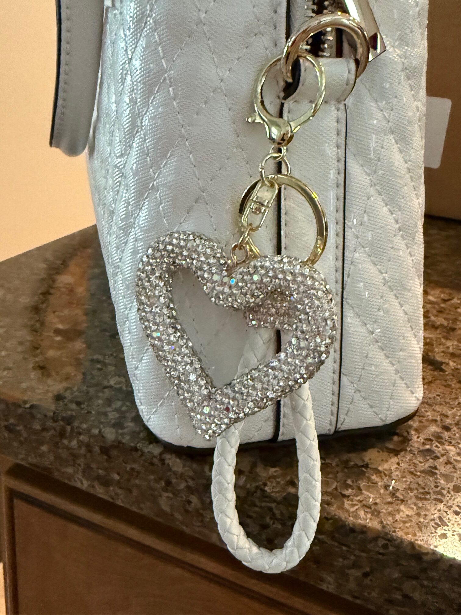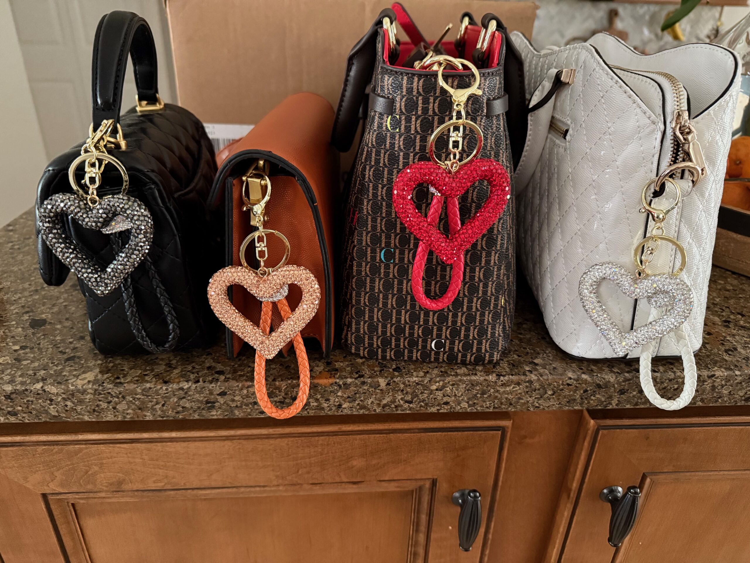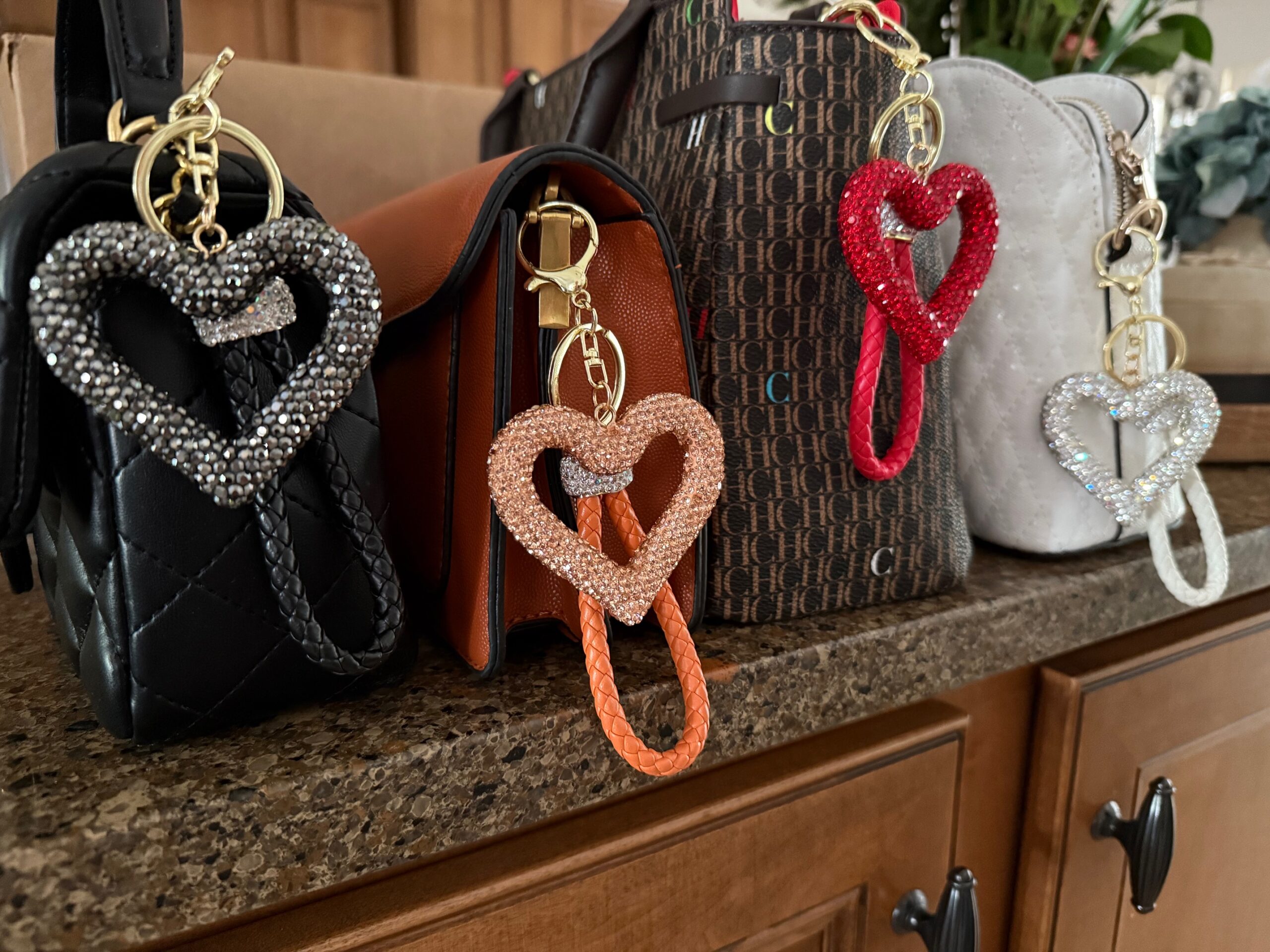 Sparkly Heart Handbag Charm | Rhinestone Purse Charm | Bag & Car Accessory in Black, White, Red and Peach Coral